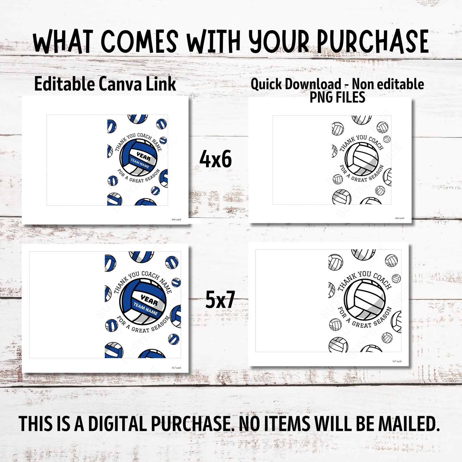 Editable Volleyball Coach Thank You Card | Customizable Canva Template | End of the Year Gift | Coach Gift | Volleyball Season