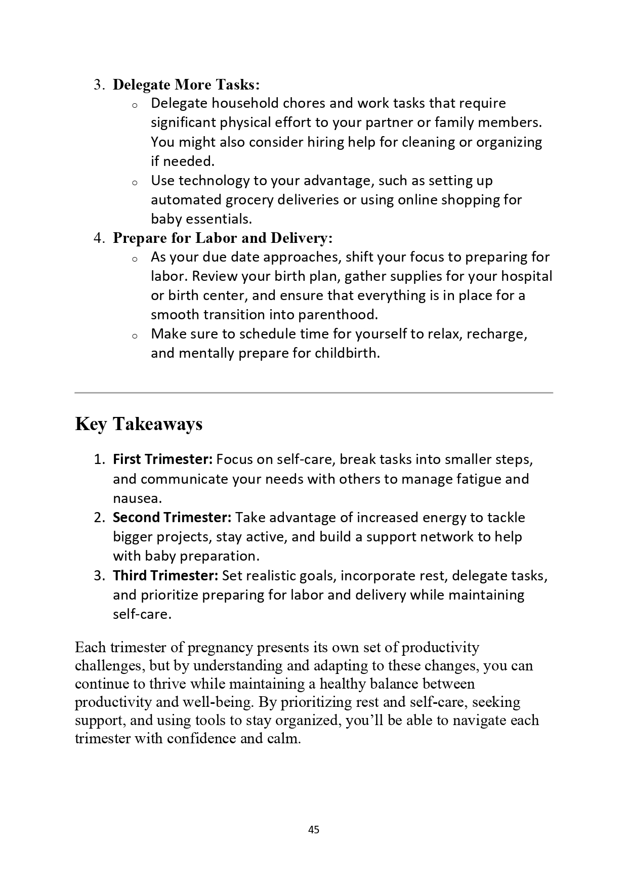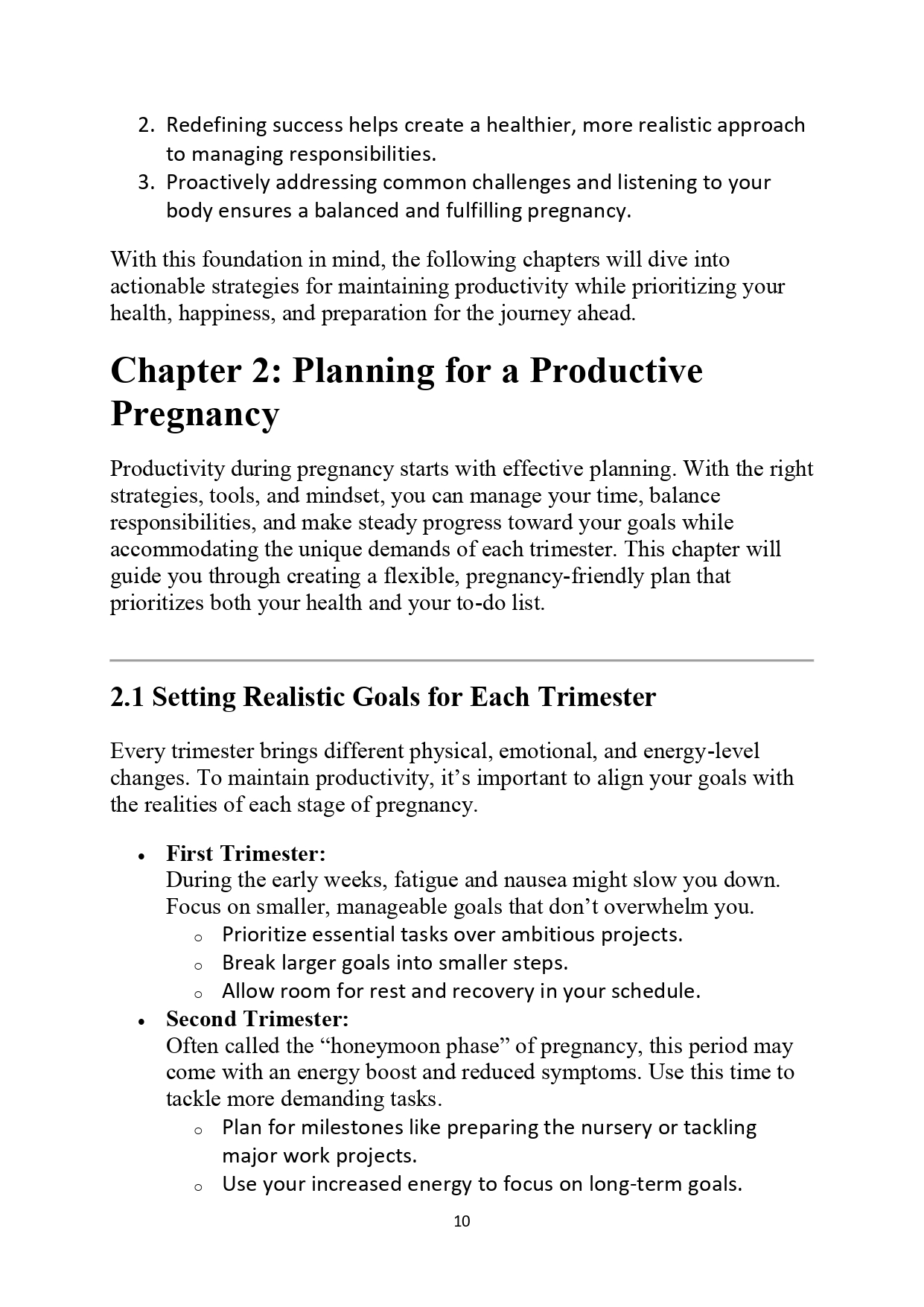 - Personalized Strategies: Learn how to set realistic goals and adapt your productivity to each trimester.