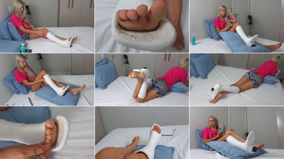 Während Hannah mit den Händen über ihren Gips streicht, beschließt sie, ein paar Notizen in ihr Notizbuch zu machen. Anschließend trägt sie Feuchtigkeitscreme auf ihren Körper auf, insbesondere auf ihre Zehen.