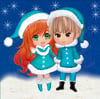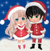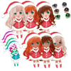 Christmas Chibi doll clipart bundle. 6 girls, 8 boys. Hair, eye and outfit colour combinations.