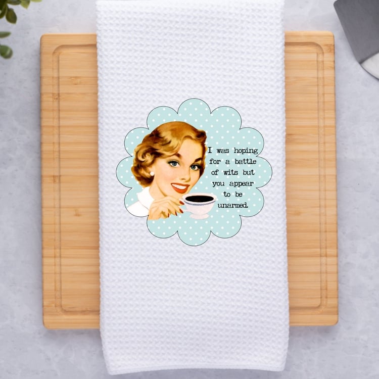 - FUNCTIONAL HOME ESSENTIAL: Durable dish towel suitable for everyday kitchen tasks while showcasing a unique sarcastic theme