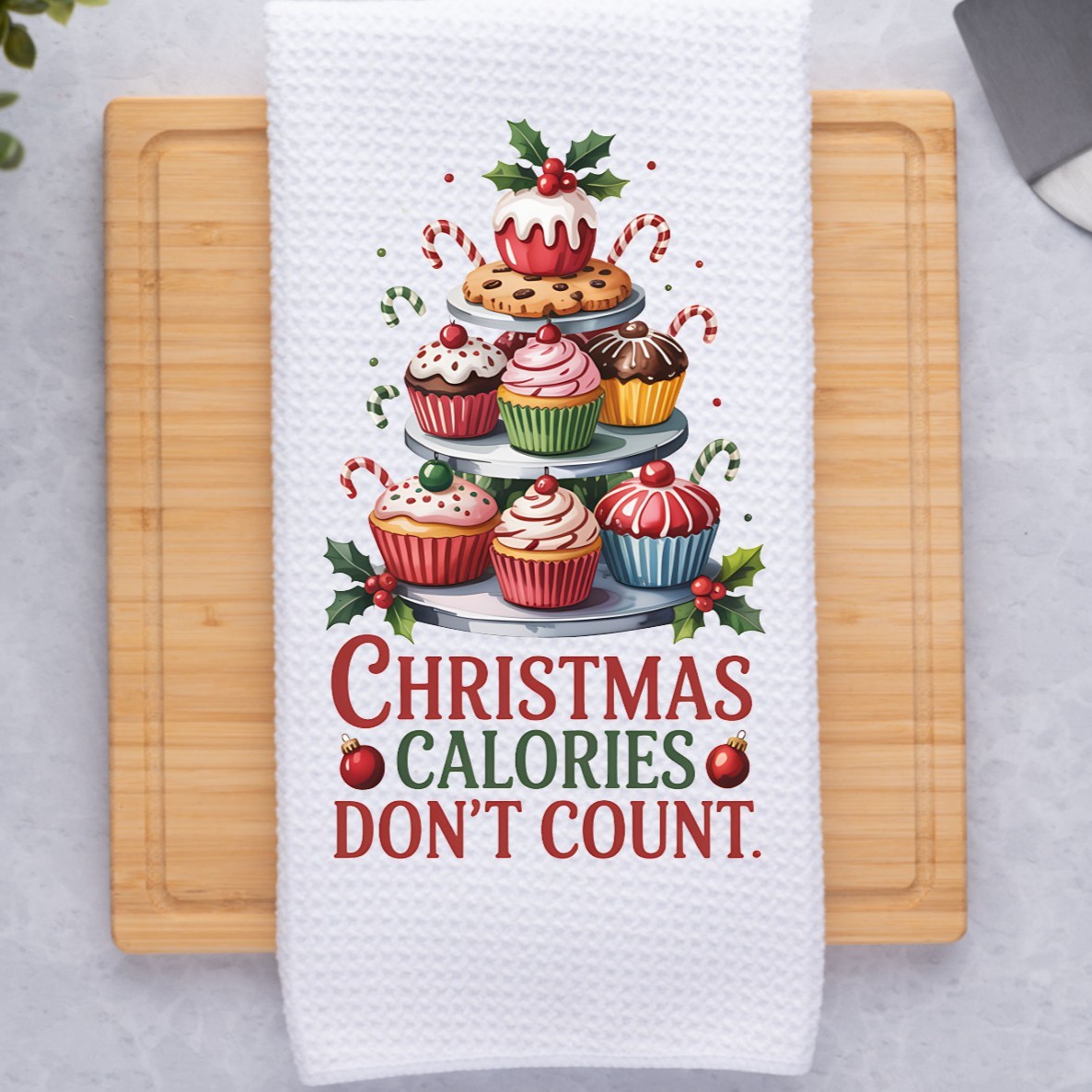 Christmas Calories Don't Count Funny Sarcastic Kitchen Dish Towel
