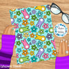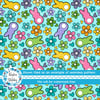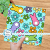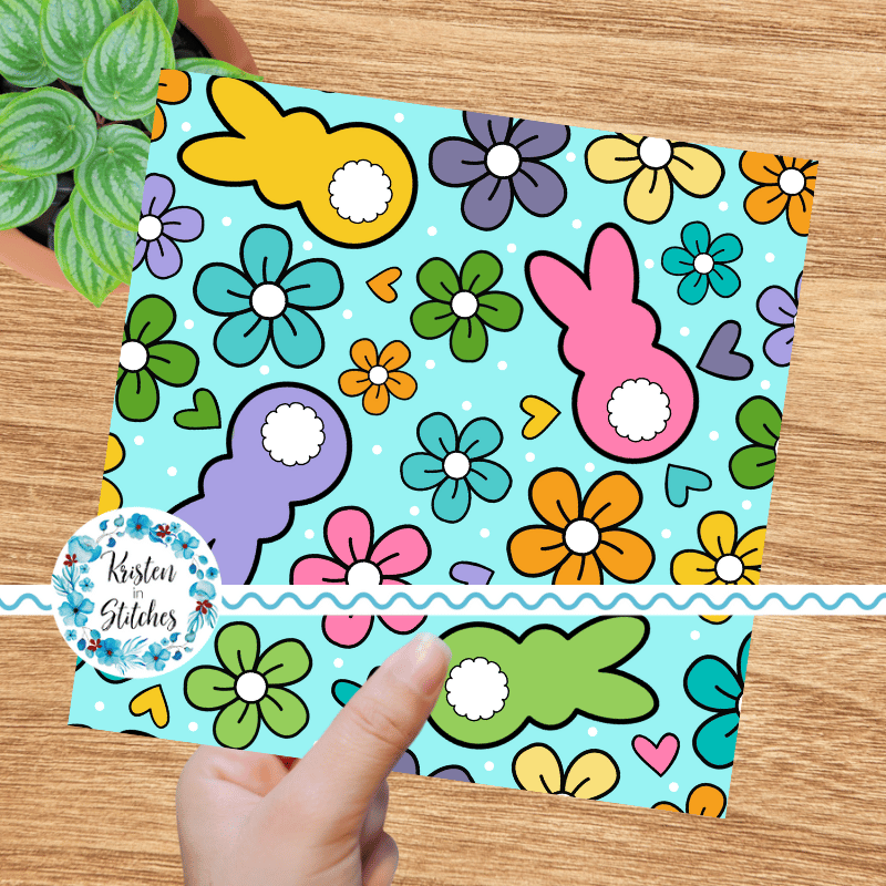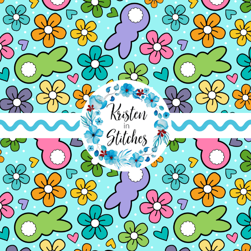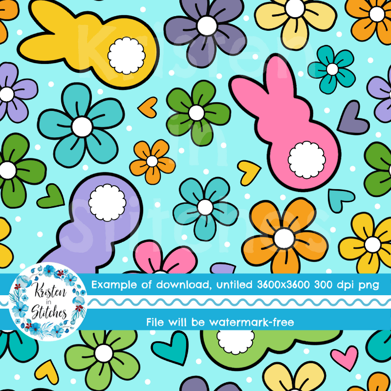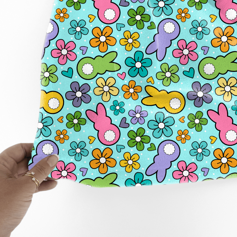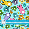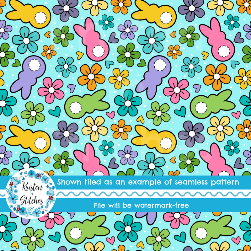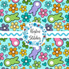 Easter Bunny Fluffy Butts Seamless Pattern, Spring Flowers, Blue