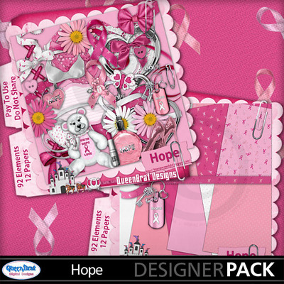 A Breast Cancer Awareness kit. Kit includes loads of pink, white and green embellishments that include Girly Things, Flowers, Boxing Gloves, Glitter, Hearts, and much, much more.