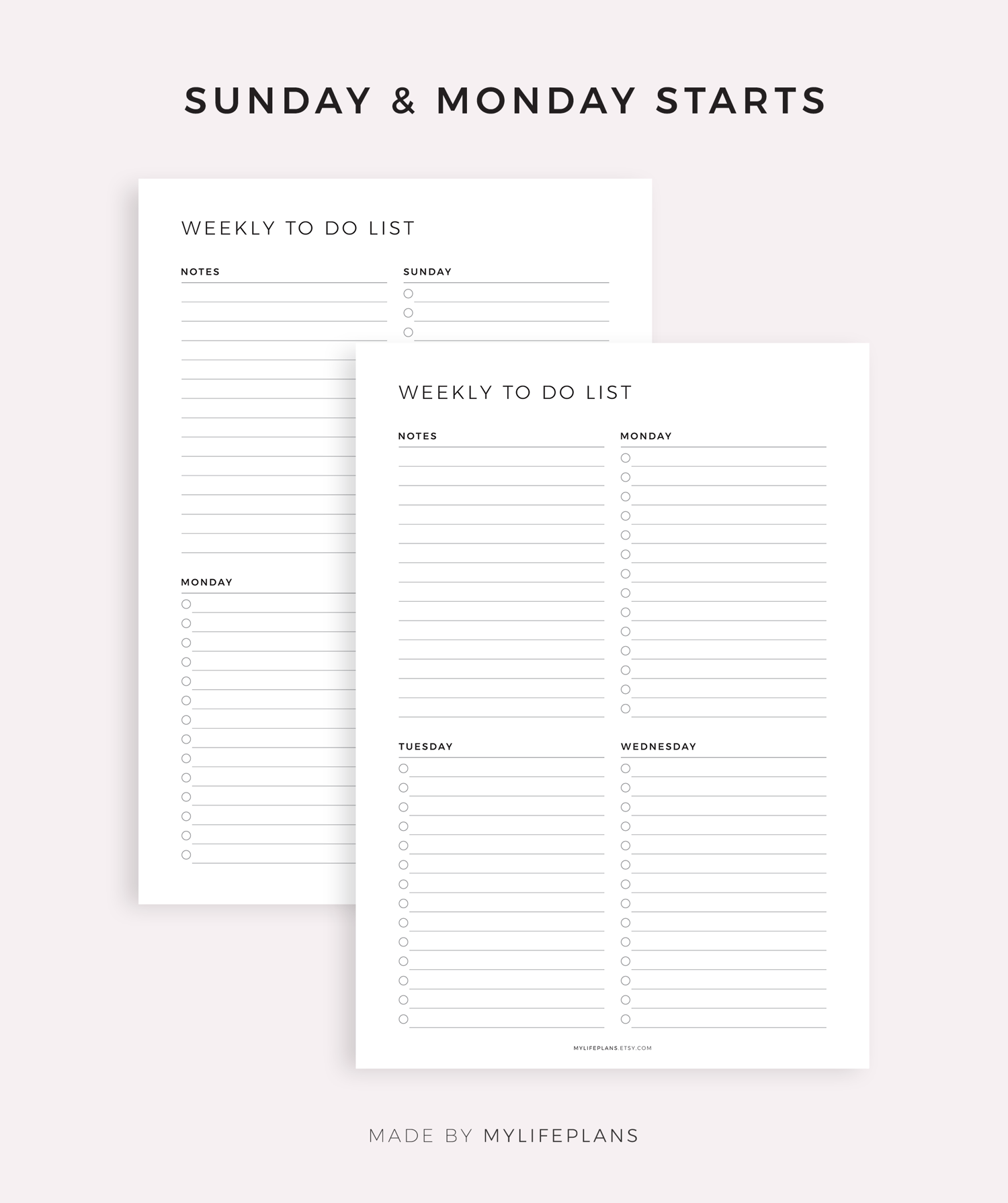 Printable Weekly To Do List on Two Pages, A4/Letter Size, Instant Download