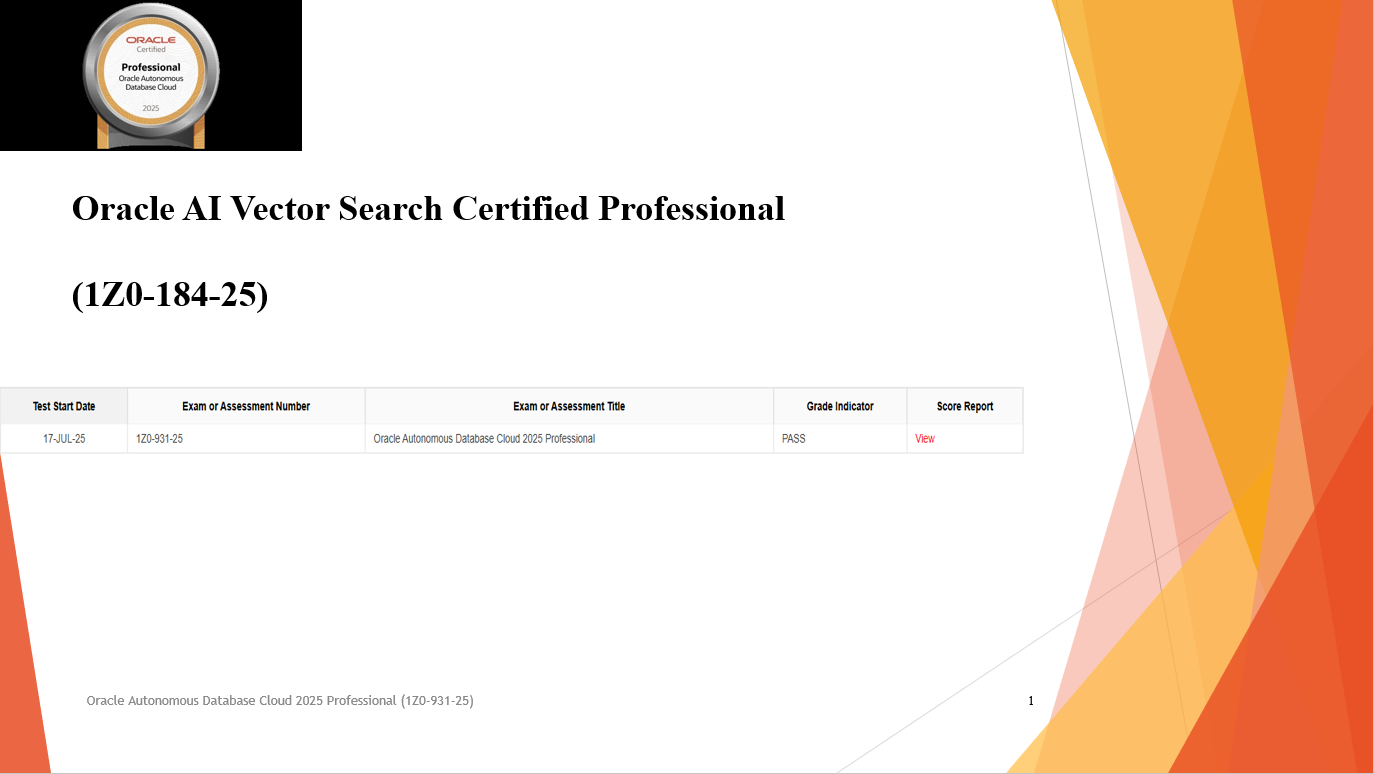 Exam Dump - Oracle Autonomous Database Cloud 2025 Professional (1Z0-931-25) Updated October 23, 2025 includes 72 questions and answers.