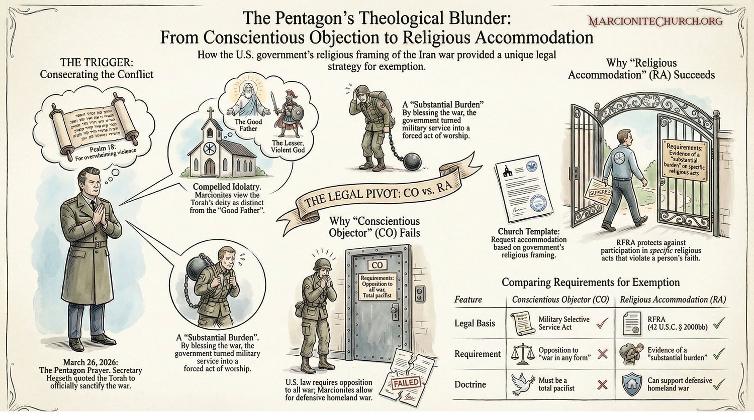 Therefore, the Marcionite Church will not assist members in filing claims for conscientious objector (1‑O) status. We advise members not to pursue this avenue, as it does not reflect our actual teachings.