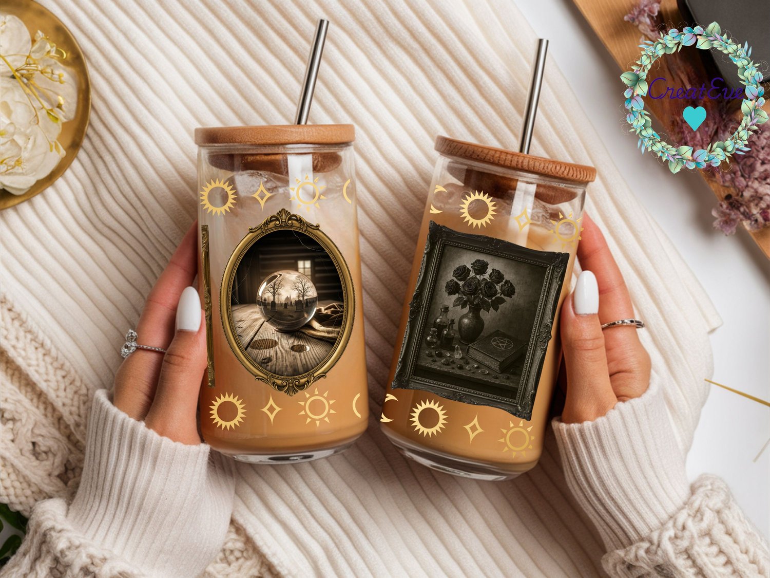 Witchcore 16oz Seamless Libbey Glass Can PNG, 300 Dpi