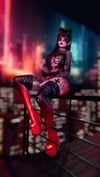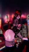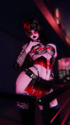 toggles: hell pup set (ears, tale and rope), biker set (bra, corset, skirt, panties, collar, fishnets and boots), leather pants, micro bikini (top & bottom), helmet, glasses, sweater, chained heels, strappy heels, hairs (1,2,3). all color swaps and hue shifts