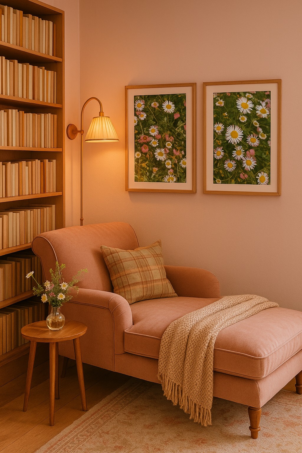 This daisy duo looks especially beautiful in natural wood, white, or oak frames, pairing effortlessly with blush, cream, linen textures, and warm ambient lighting.