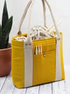 This is one tough little tote! And simple to make too. The Albany is made from classic canvas and has webbing straps with rivets. Perfect for heavier projects or simply stuffing full of whatever you need to carry. I love its simplicity which can be changed up by using different fabric or adding labels.