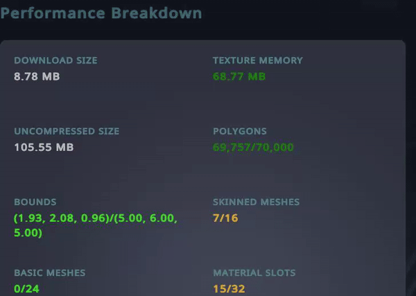 Quest: All stats: MB in game, DL Size, Texture size, Polycount all listed here: