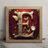 The letter E red velvet and gold steampunk character