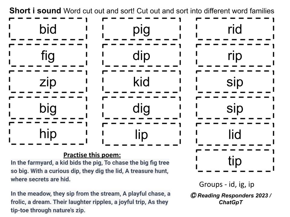 Word Families Cut and Sort Resource