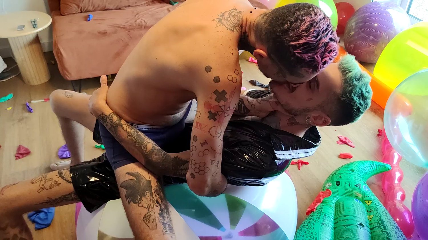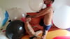 Théo and Lucas burst giant balloons