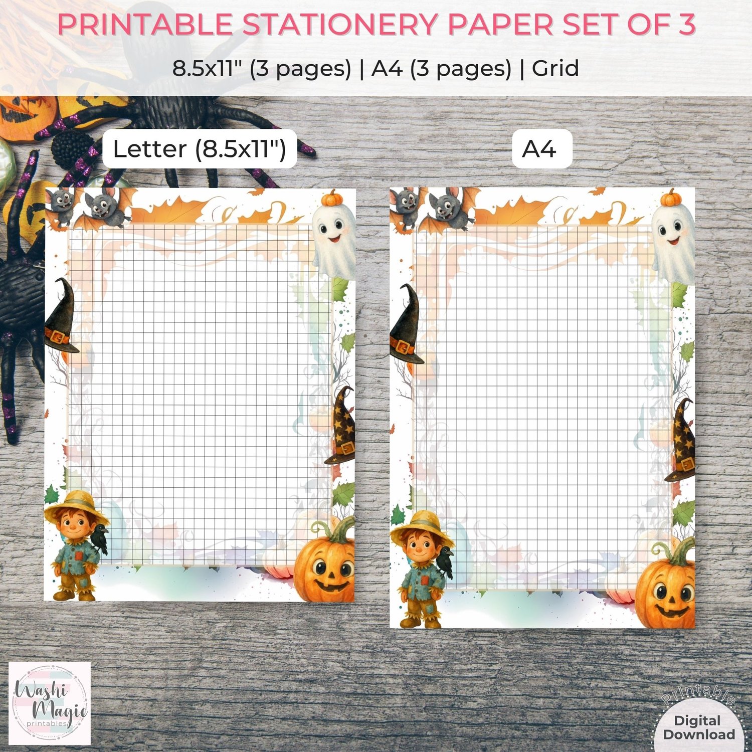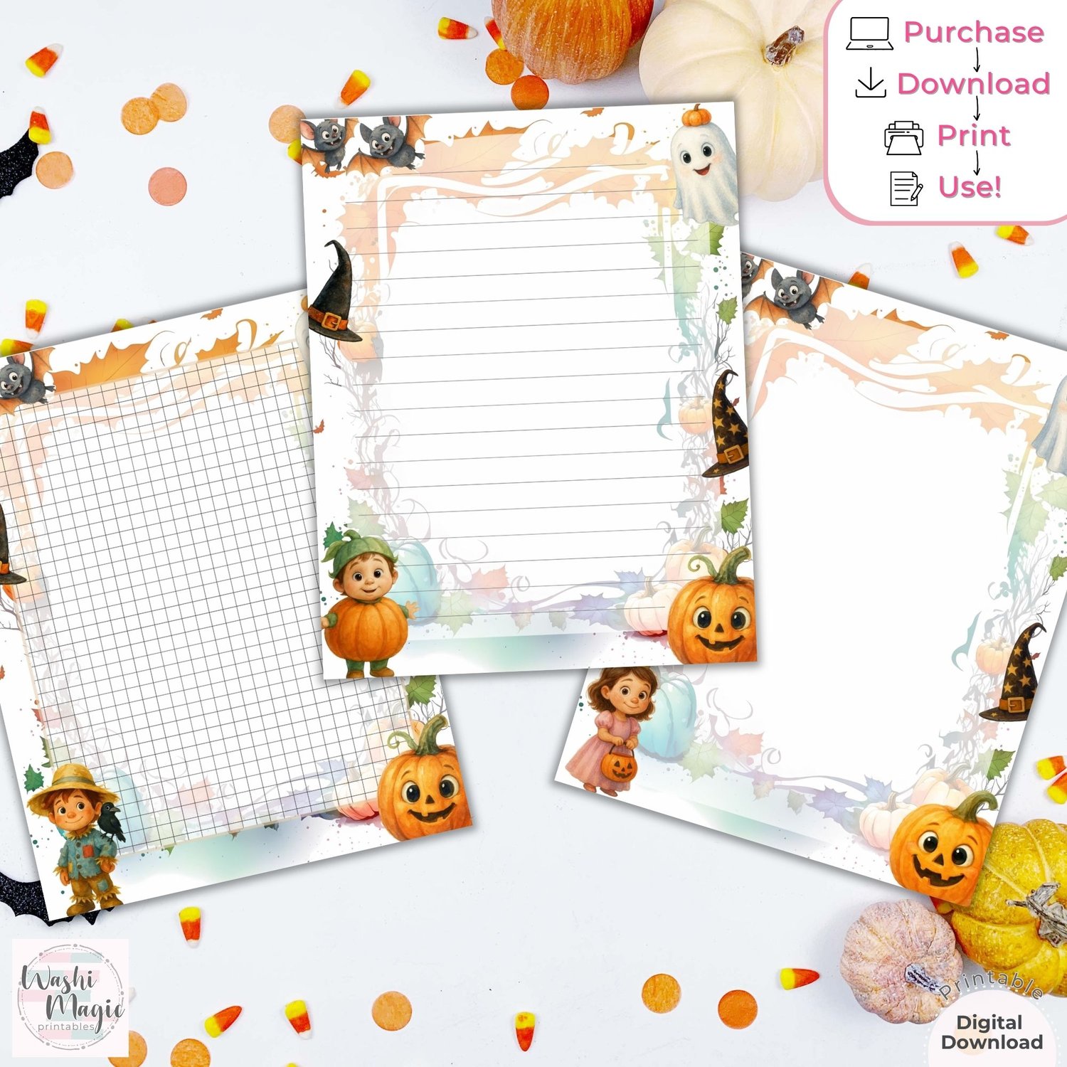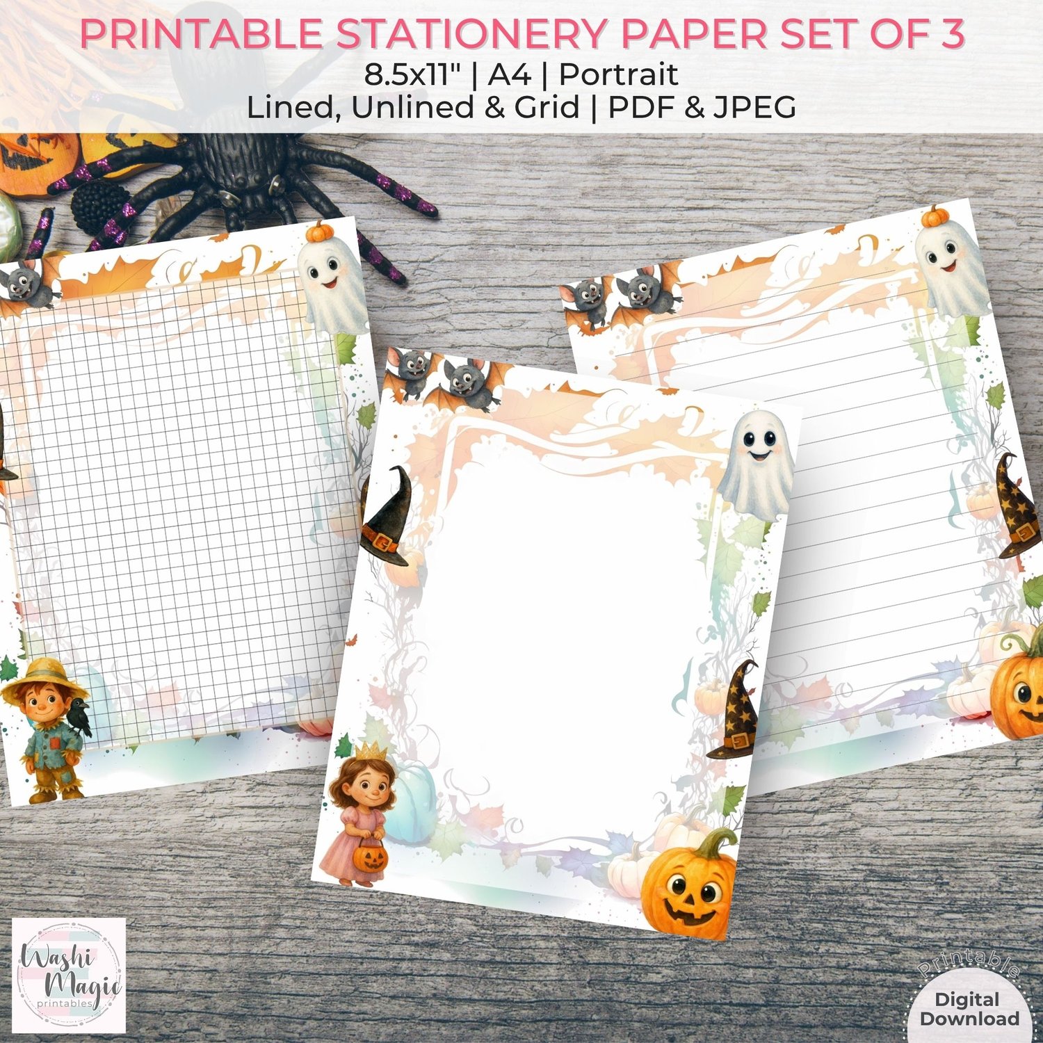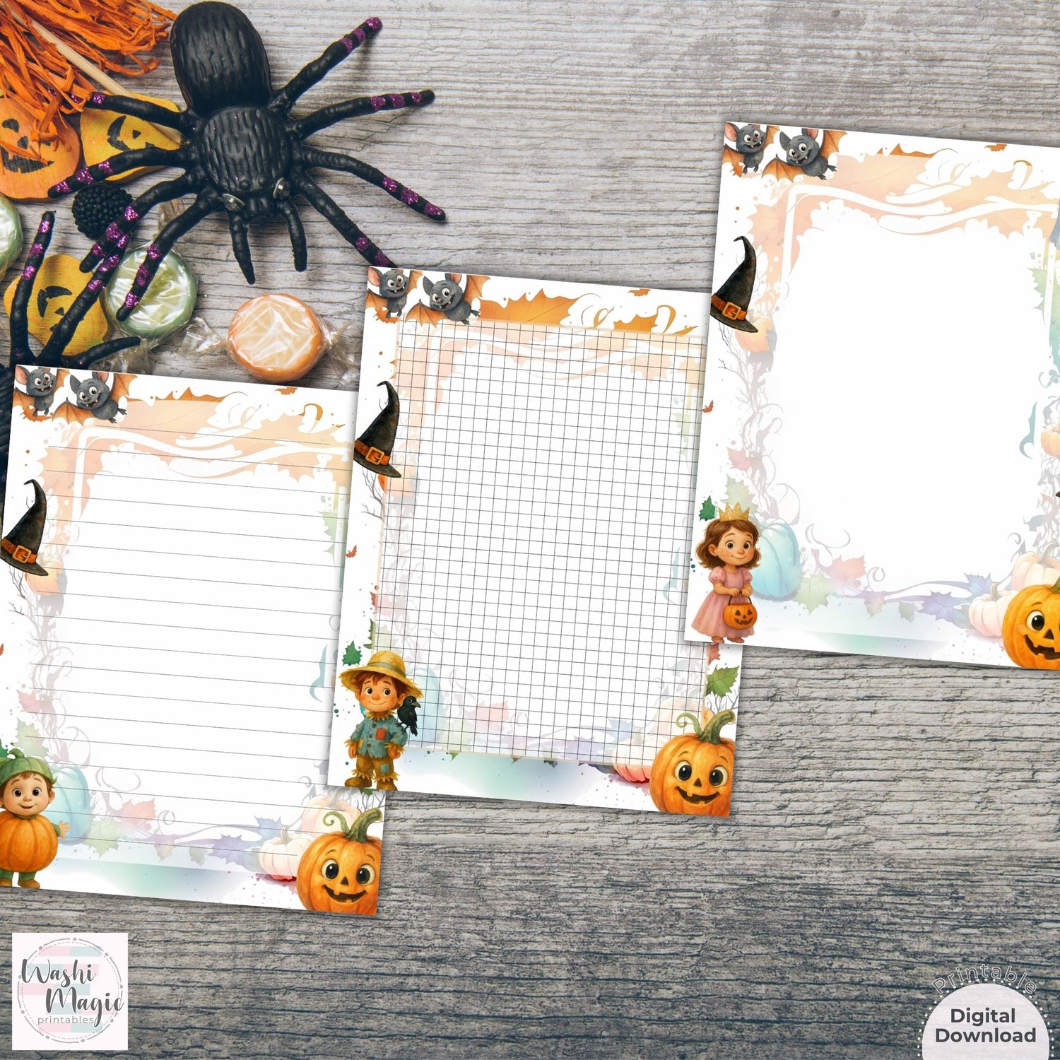 Halloween Cuties Printable Stationery Set Fun Pumpkin Note Paper Writing Set of 3