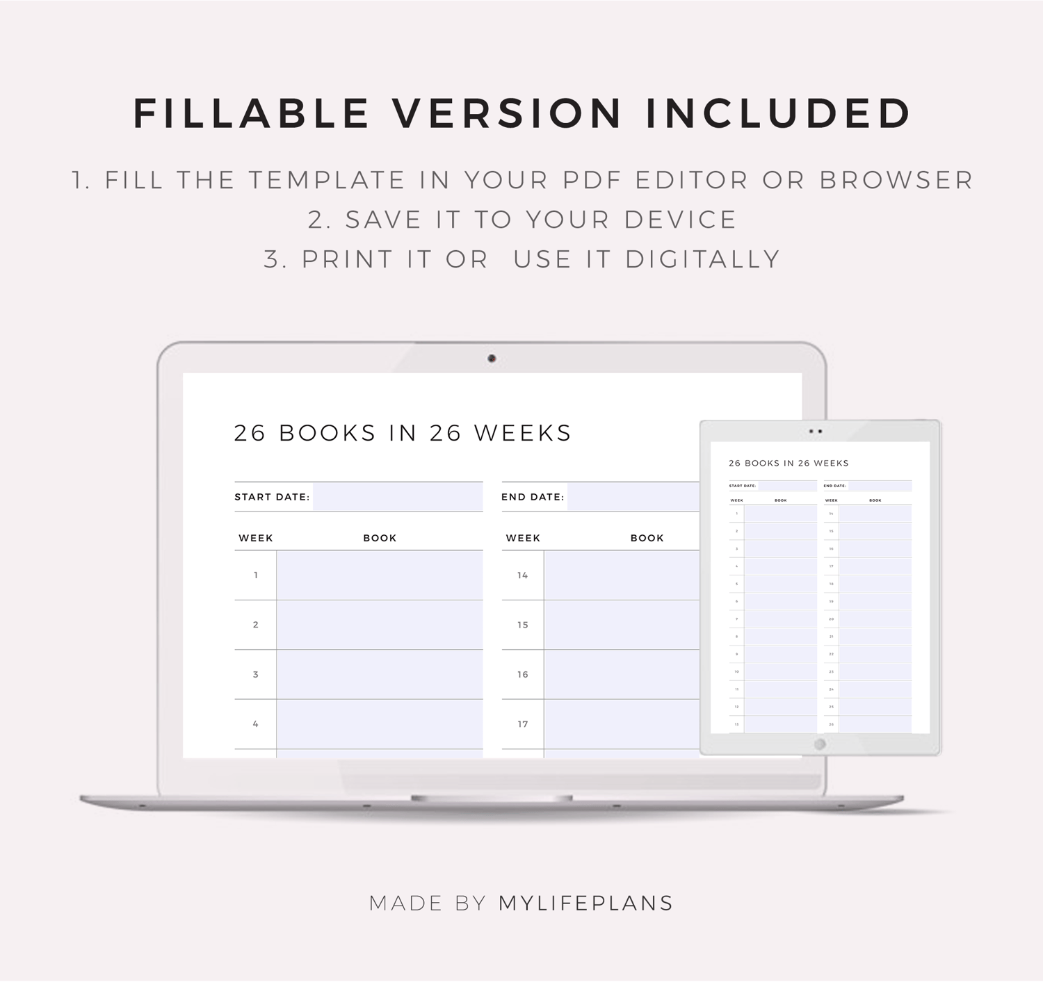 Read 26 Books in 26 Weeks Challenge, Printable & Fillable Template, A4/Letter Size
