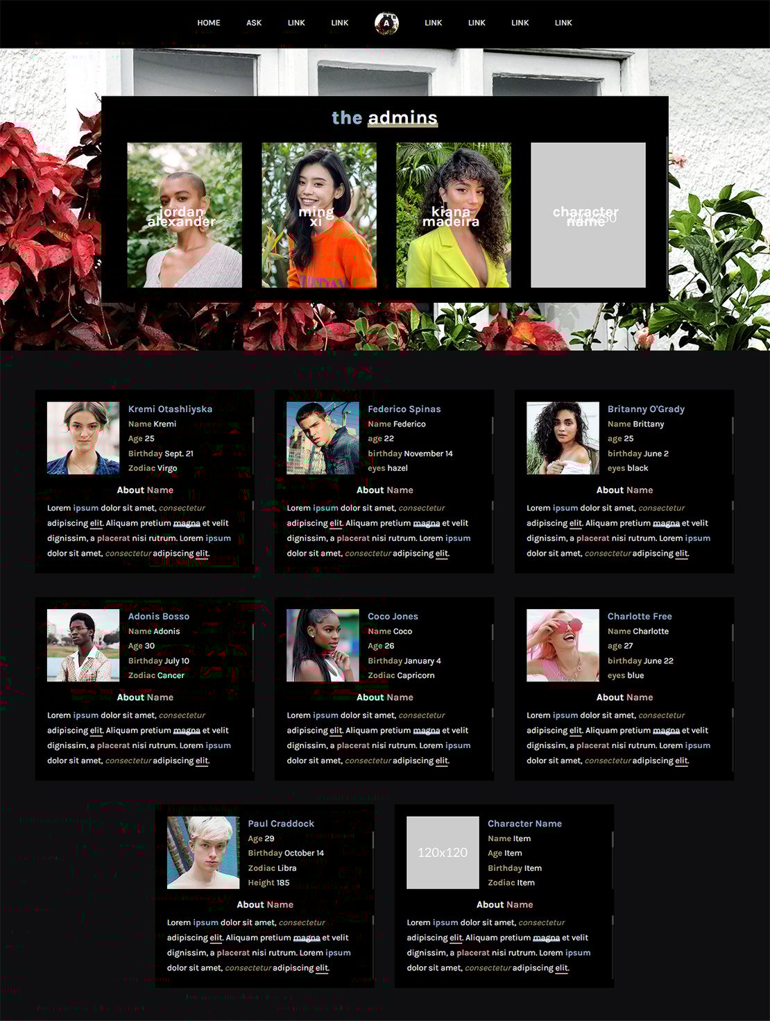 - Unlimited amount of characters that include a 120x120 avatar, character name, scrolling stats and biography