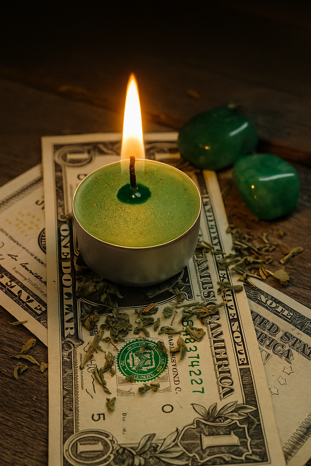 This tea light is charged with money-drawing herbs, prosperity oils, and intention to help shift your financial energy and open pathways to abundance.