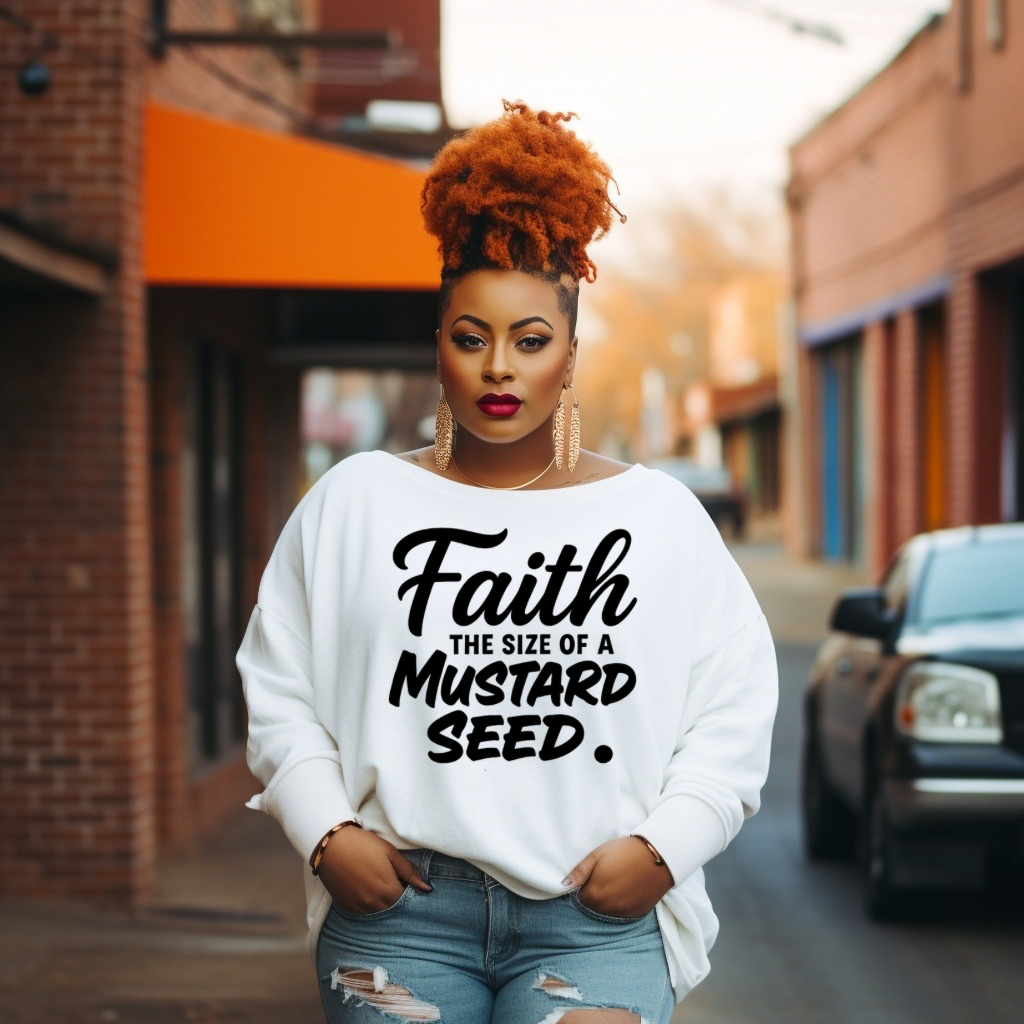 This high-resolution PNG file features the phrase “Faith the Size of a Mustard Seed” in modern script and bold block lettering — a beautiful reminder of belief and strength inspired by Matthew 17:20.