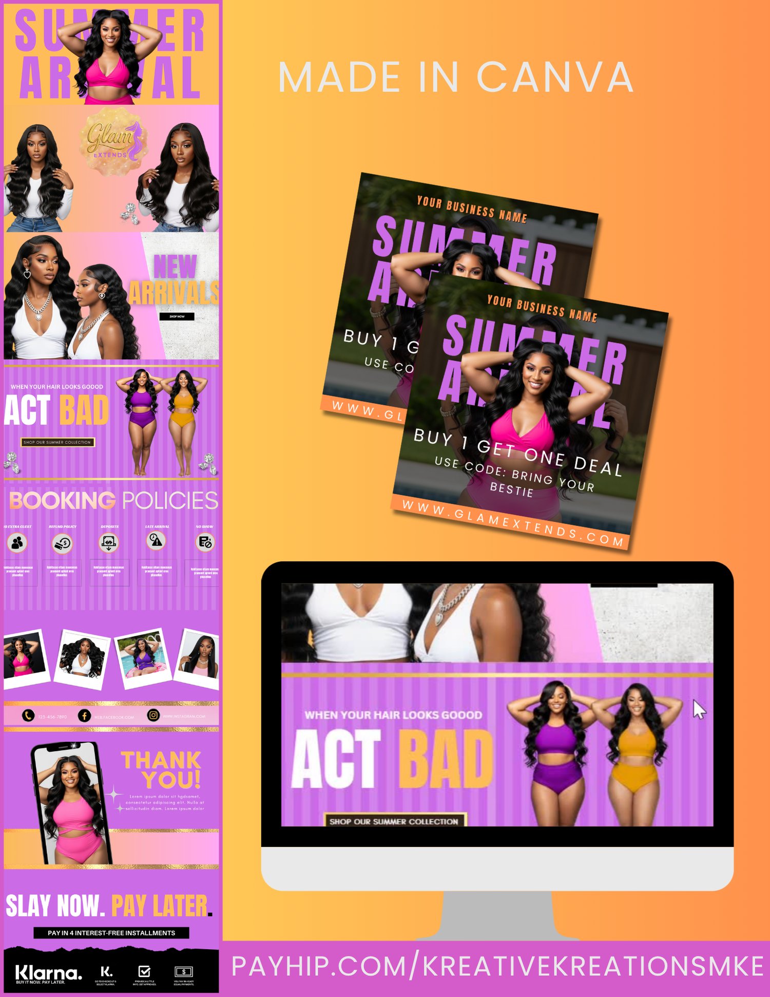 This one-page design is perfect for showcasing your products or services without the stress of a full site build. It’s clean, clickable, and created 100% in Canva using their free website option — and yes, you can connect your own domain!