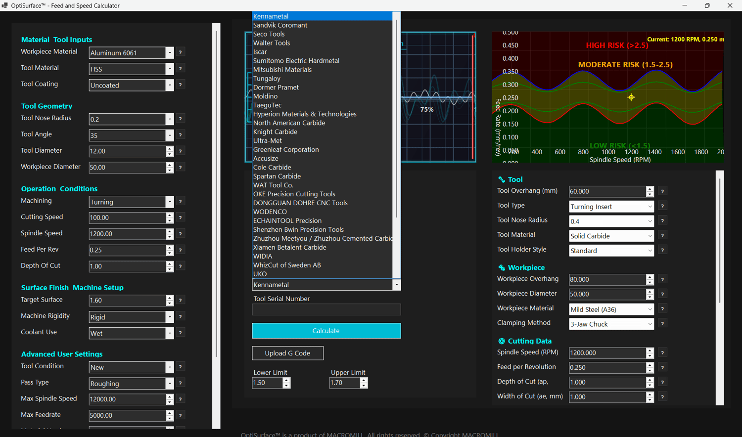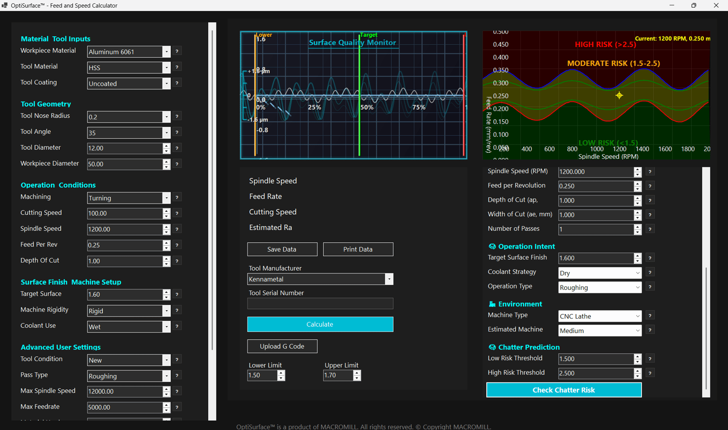 OptiSurface™ isn’t just another calculator. It’s a purpose-built CNC tool that gives you full control over surface quality and vibration — using real machining parameters, not outdated tables.