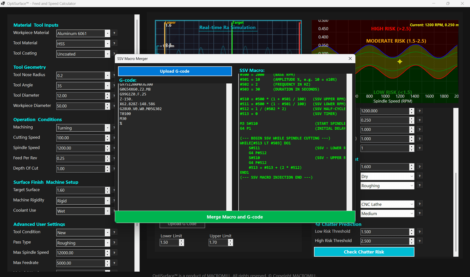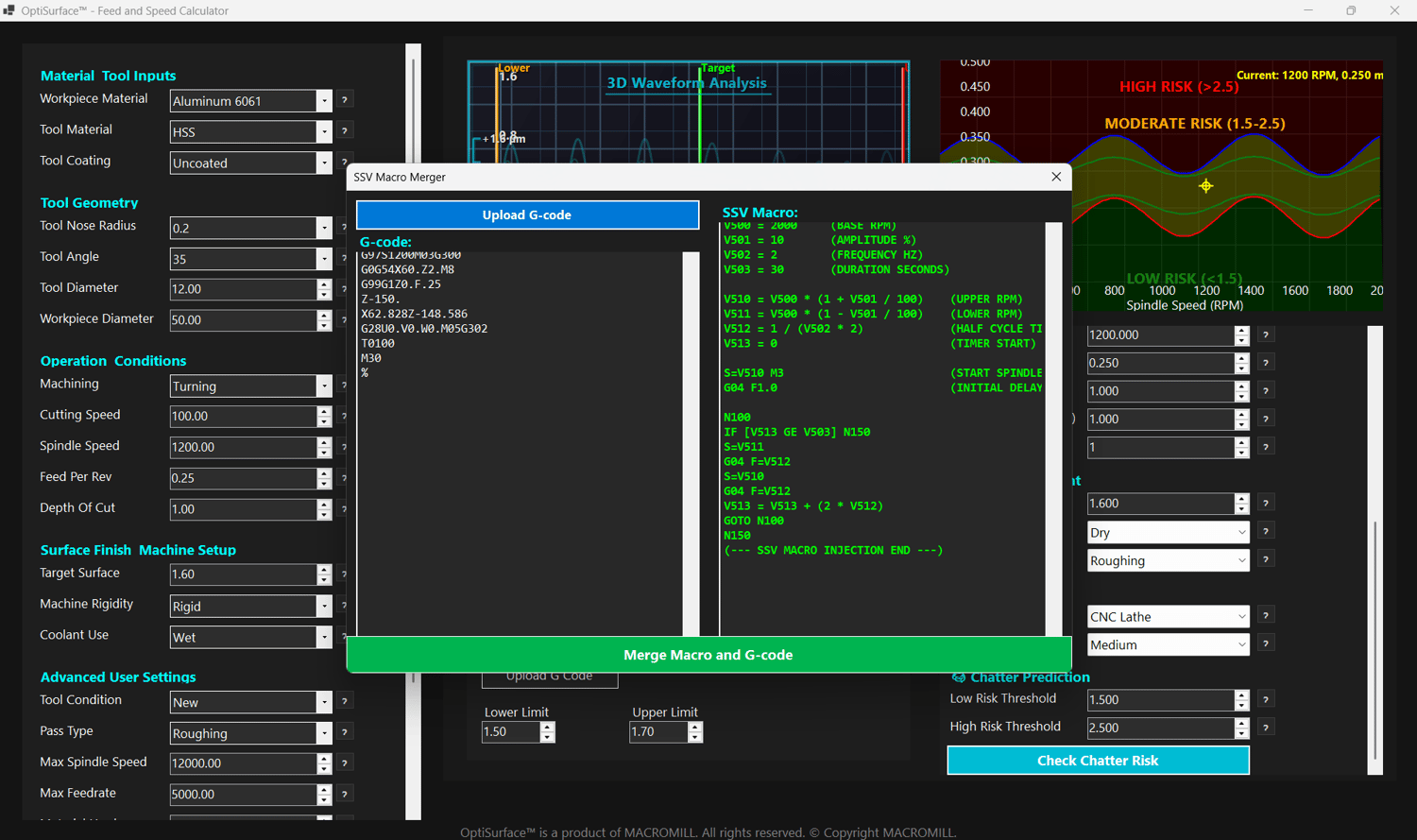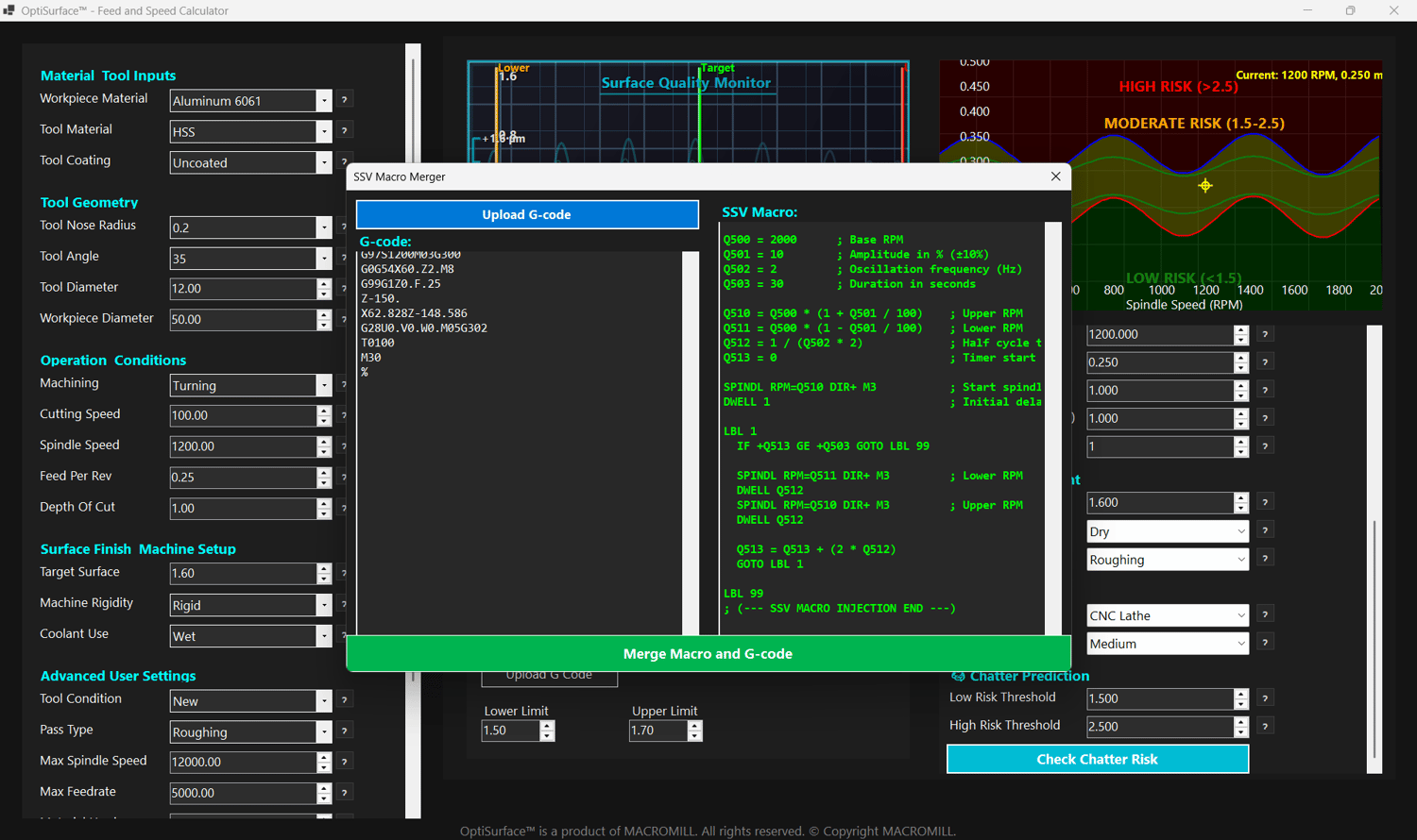 This is the only system that combines surface finish prediction, dynamic cutting parameter calculation, and now — for the first time ever — SSV logic you can use on any CNC machine.