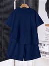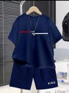 Tween Boys Casual Chic Striped Split "King" Letter Graphic Print Round Neck Short Sleeve T-Shirt & Shorts 2 Piece Set, Suitable For Summer