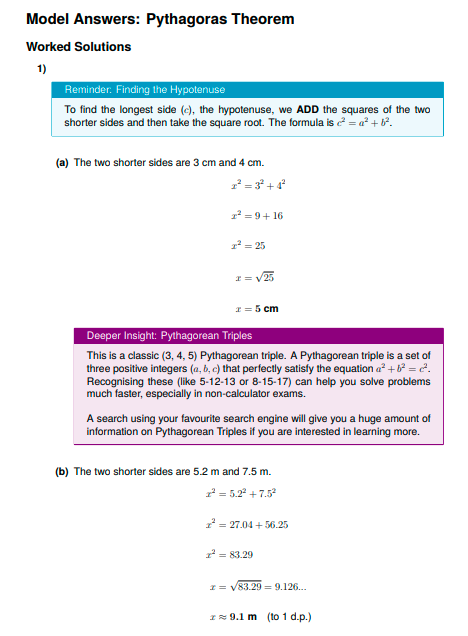 IGCSE Extended Level Maths: Pythagoras Theorem (Worksheet & Model Answers)