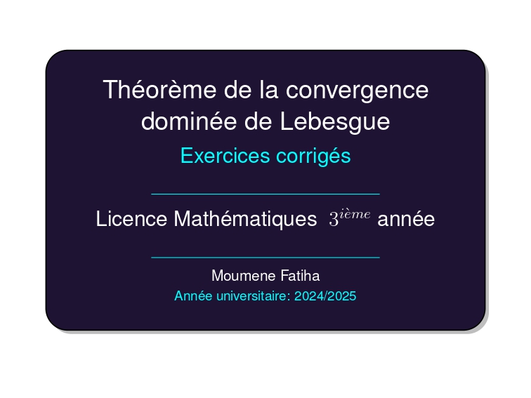 Cette collection d’exercices explore le Théorème de la convergence dominée de Lebesgue. Chaque problème est conçu pour renforcer la rigueur et aiguiser l’esprit critique : comprendre, c’est douter, vérifier et démontrer.