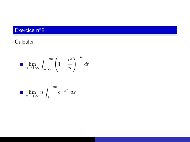 📘 Série d’exercices – Théorème de la convergence dominée