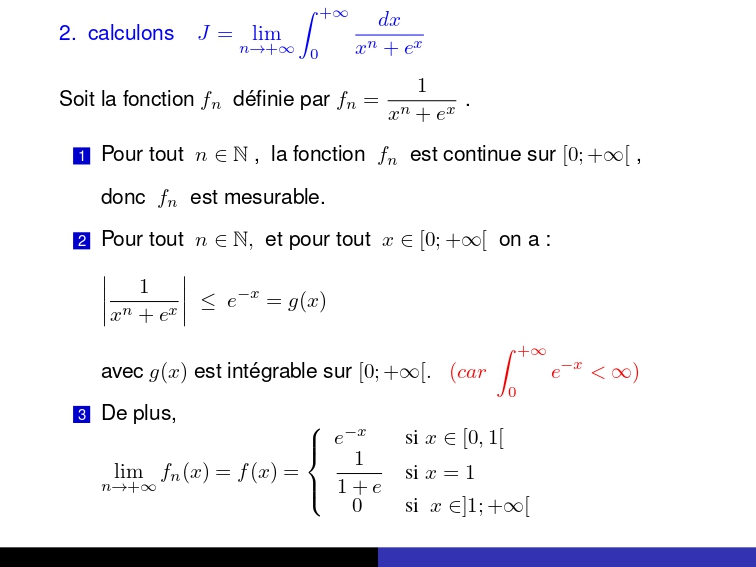 - Construire une fonction dominante et justifier son intégrabilité.