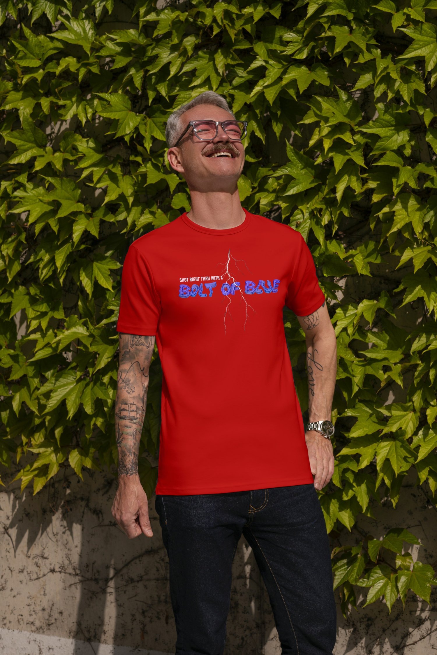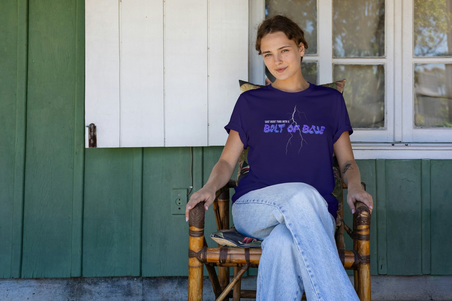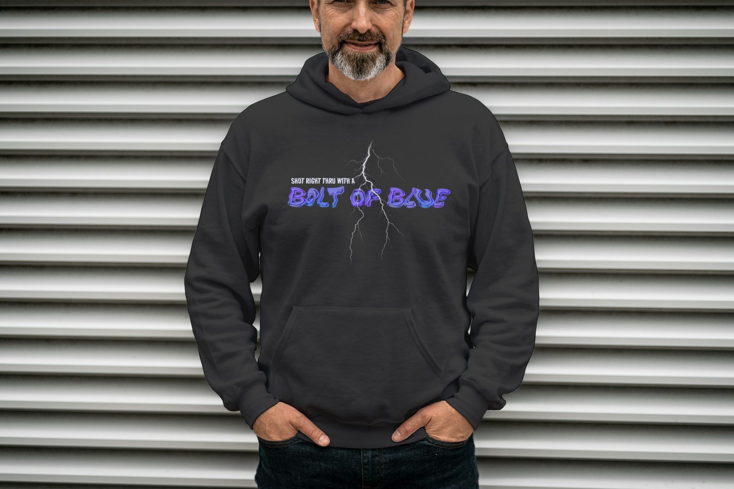 Inspired by Bizarre Love Triangle — the ultimate 80s dance heartbreak — this design distills that one haunting line: “Shot right thru with a bolt of blue.”