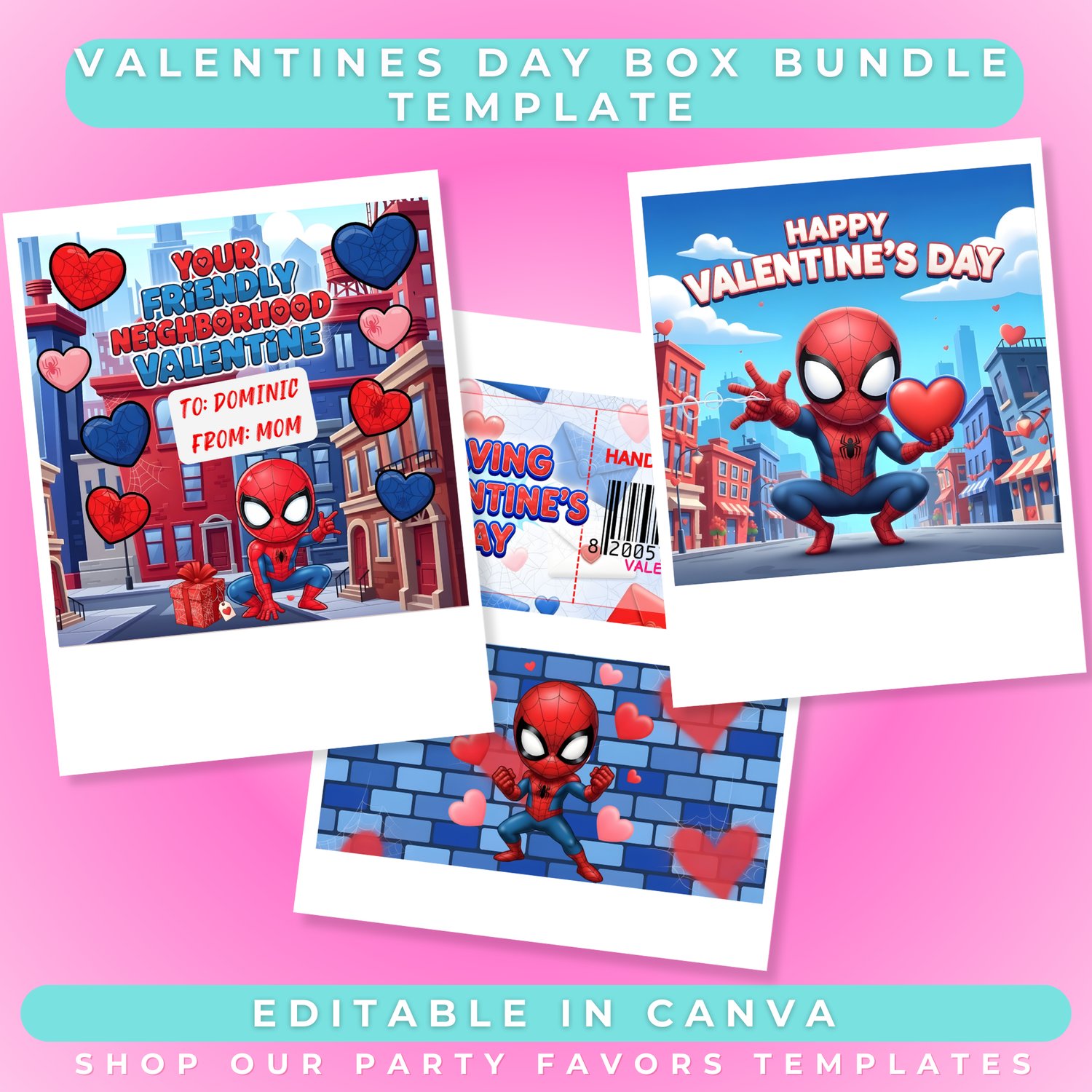 Superhero Valentine Box Bundle Template | Editable Canva Valentine Treat Wrappers | Kids Valentine Party Favor Set