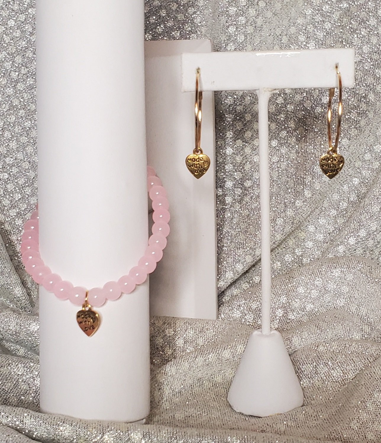 📦Light Pink Glass Bead Bracelet/Earrings Set #LPBE2