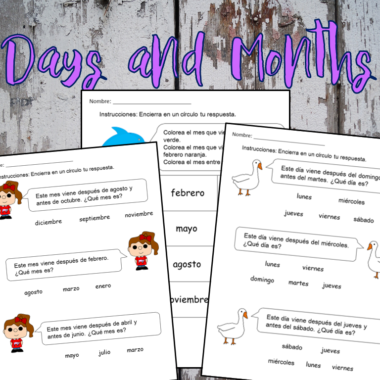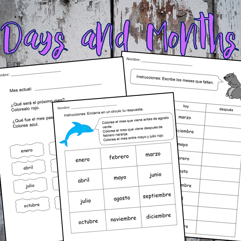 Days & Months Worksheets & Flashcards (English & Spanish)
