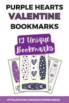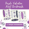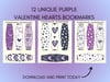 12 Purple Valentine Heart Bookmarks | Printable Purple Heart Bookmarks | Set Of Valentine Heart Bookmarks | Valentine Page Holders | Gift For Readers