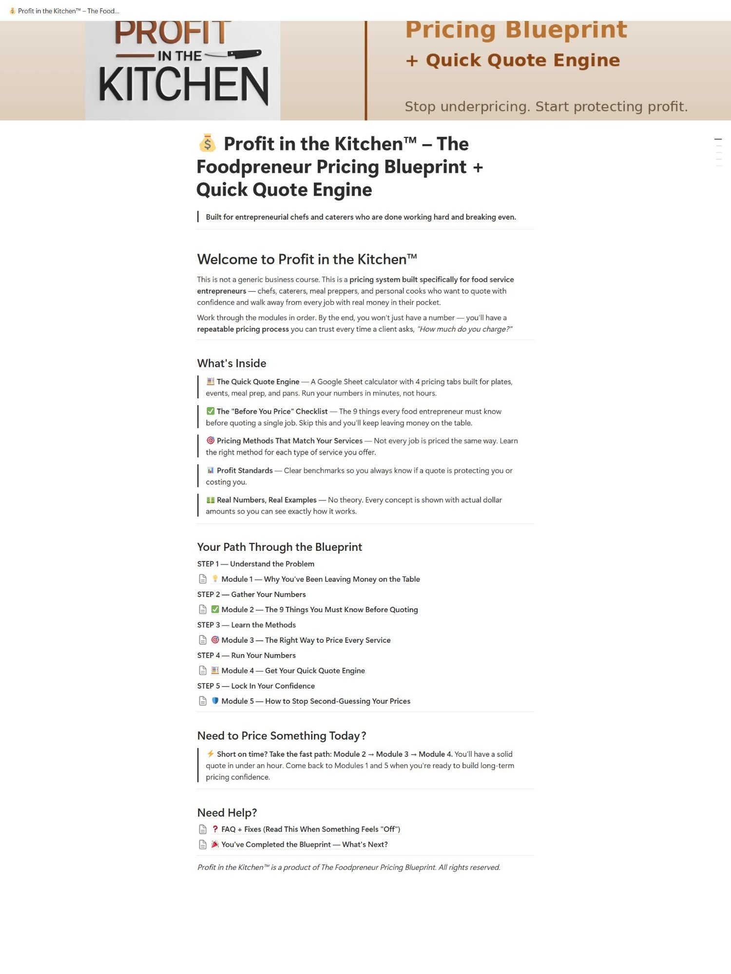Profit in the Kitchen™ – The Foodpreneur Pricing Blueprint + Quick Quote Engine