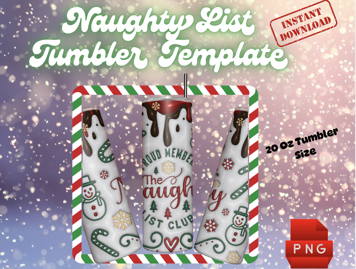 Embrace the holiday spirit with a cheeky twist by using our “Naughty List” tumbler wrap! Perfect for those who love to add a dash of sass to their festivities or for gifting some humor to friends and family, this high-quality sublimation design ensures your 20oz skinny tumbler stands out with festive mischief. Ideal for crafting hilarious Christmas gifts, stocking stuffers, or simply keeping the holiday cheer alive (and a tad mischievous).