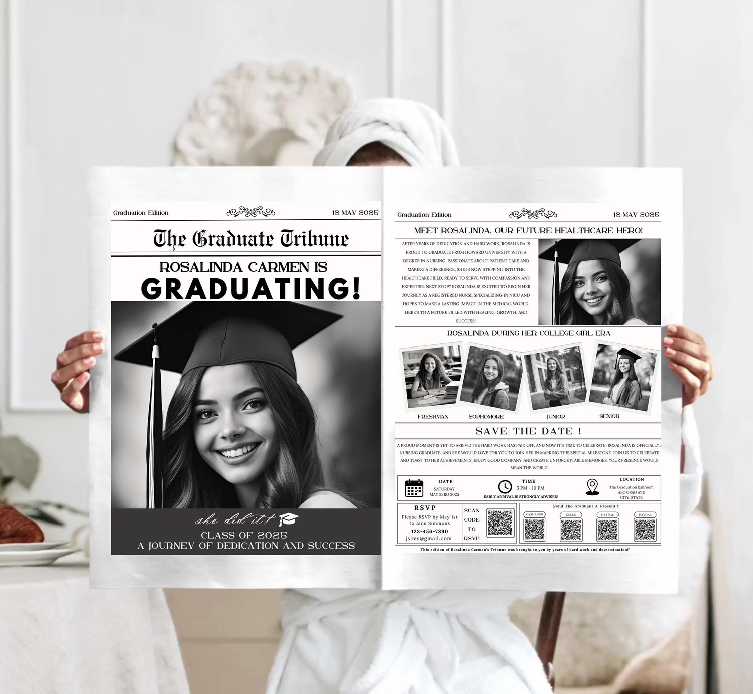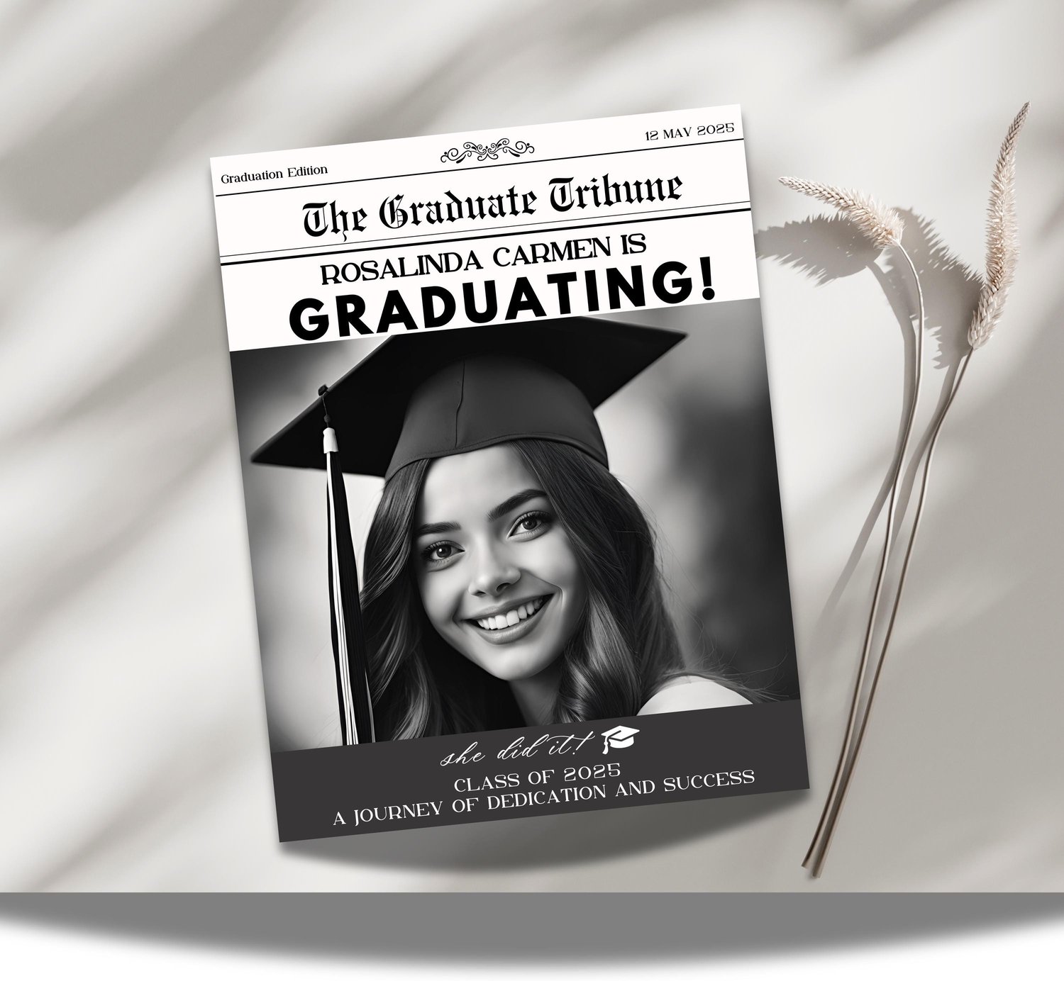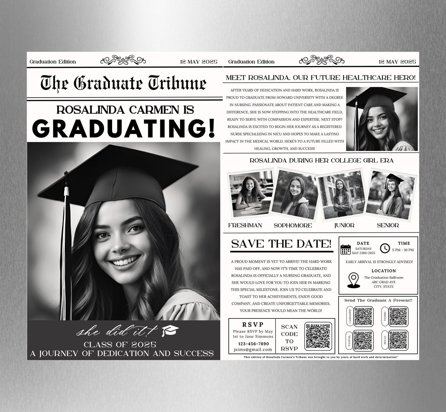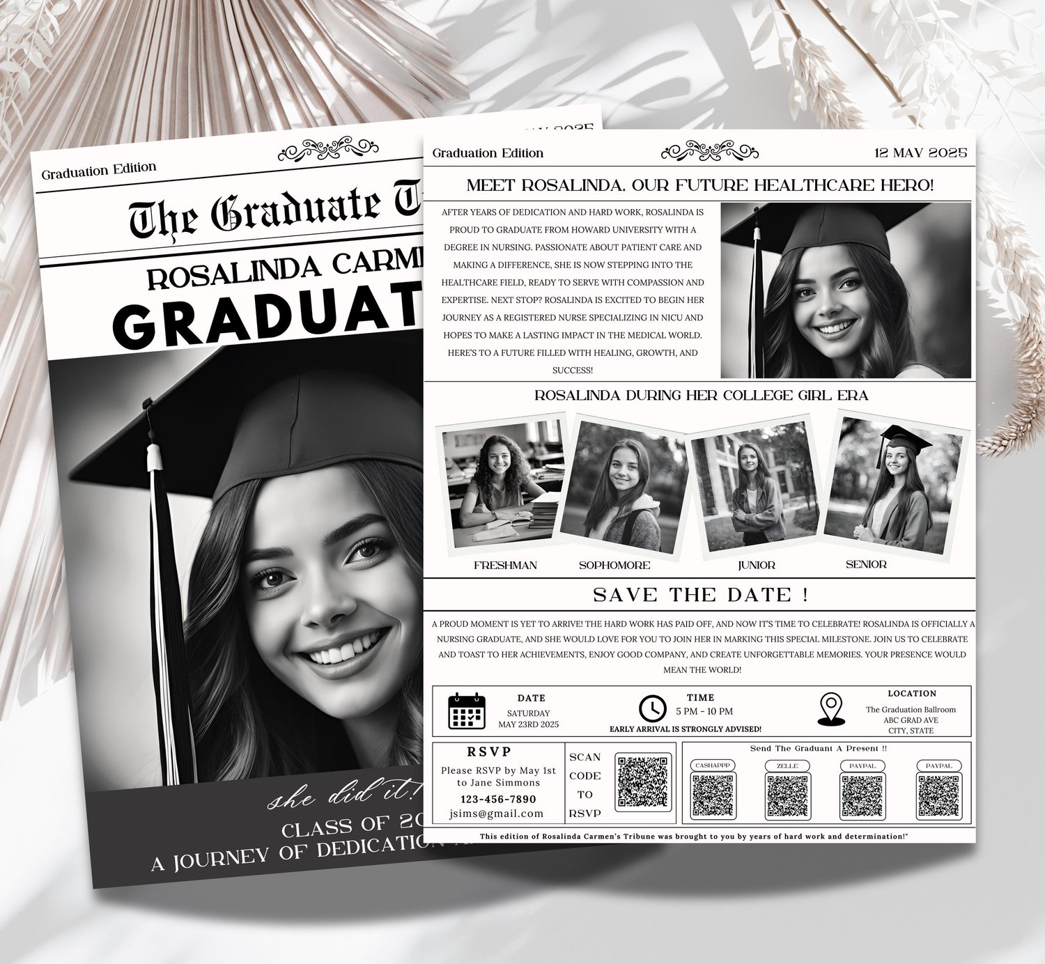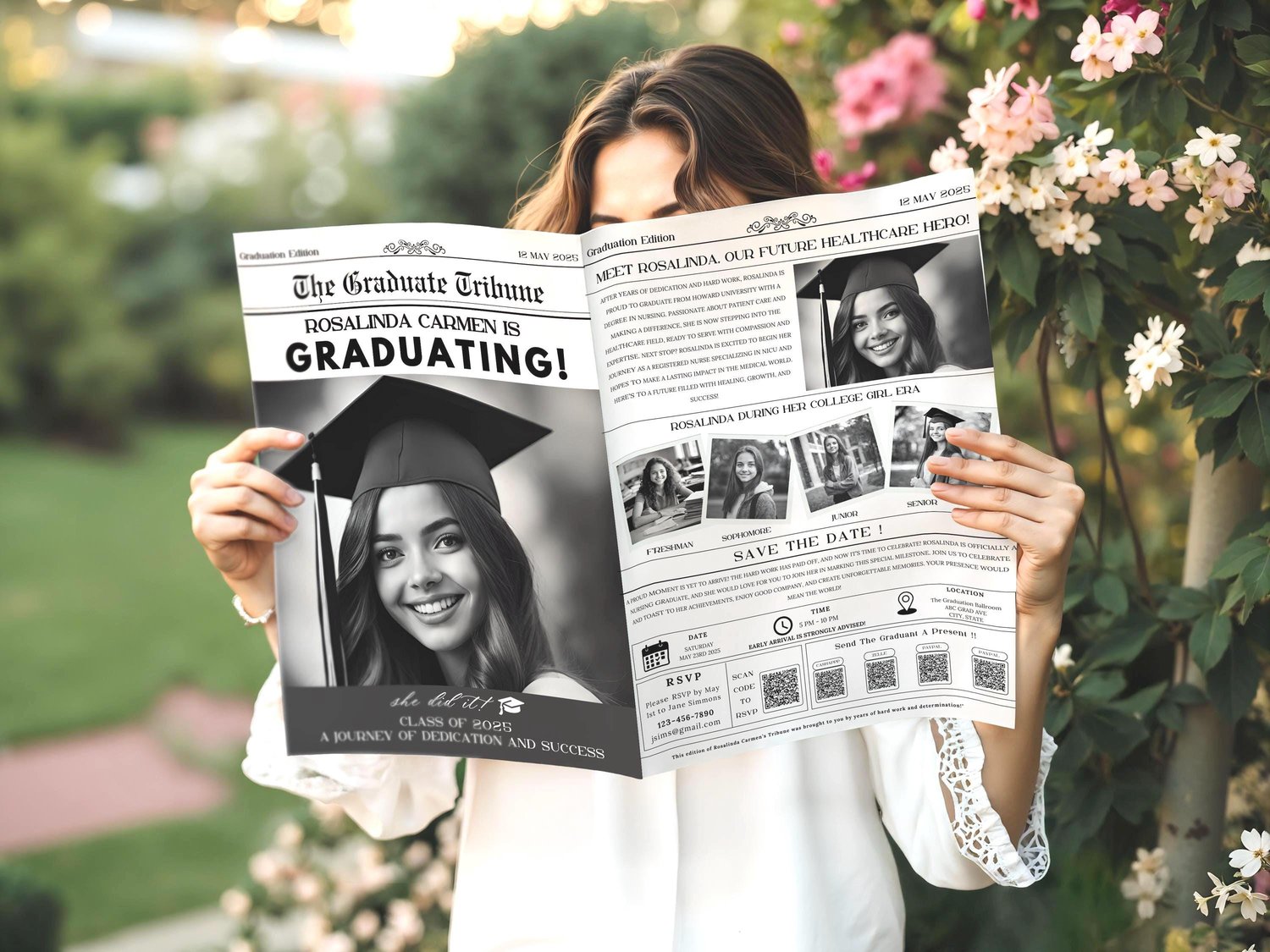 ๐ Make your graduation announcement unforgettable with this classic newspaper invitation! Order now and start customizing instantly.