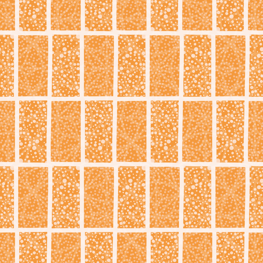 Random orange circles seamless pattern. Doodle grid vector background with rectangular design.
