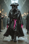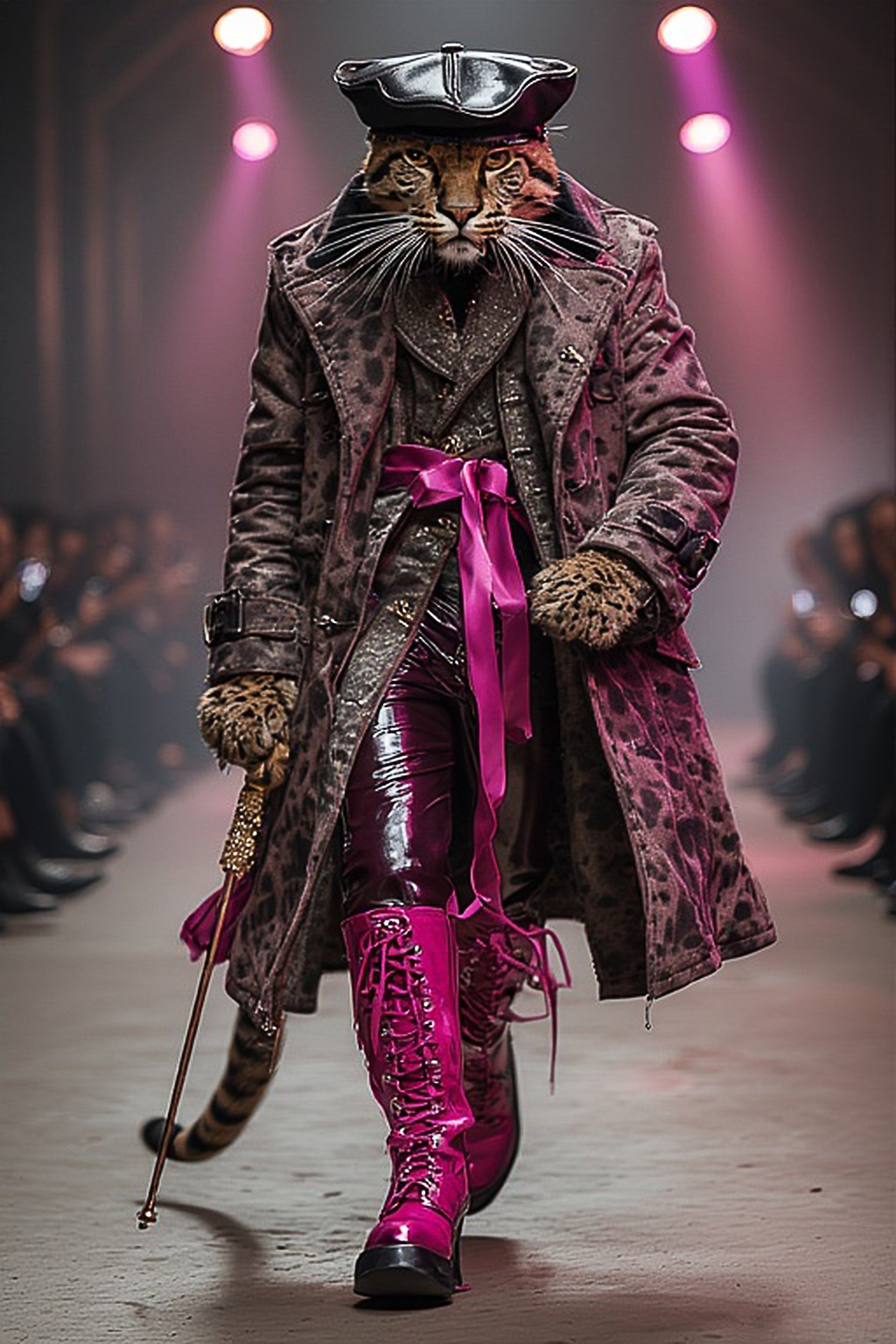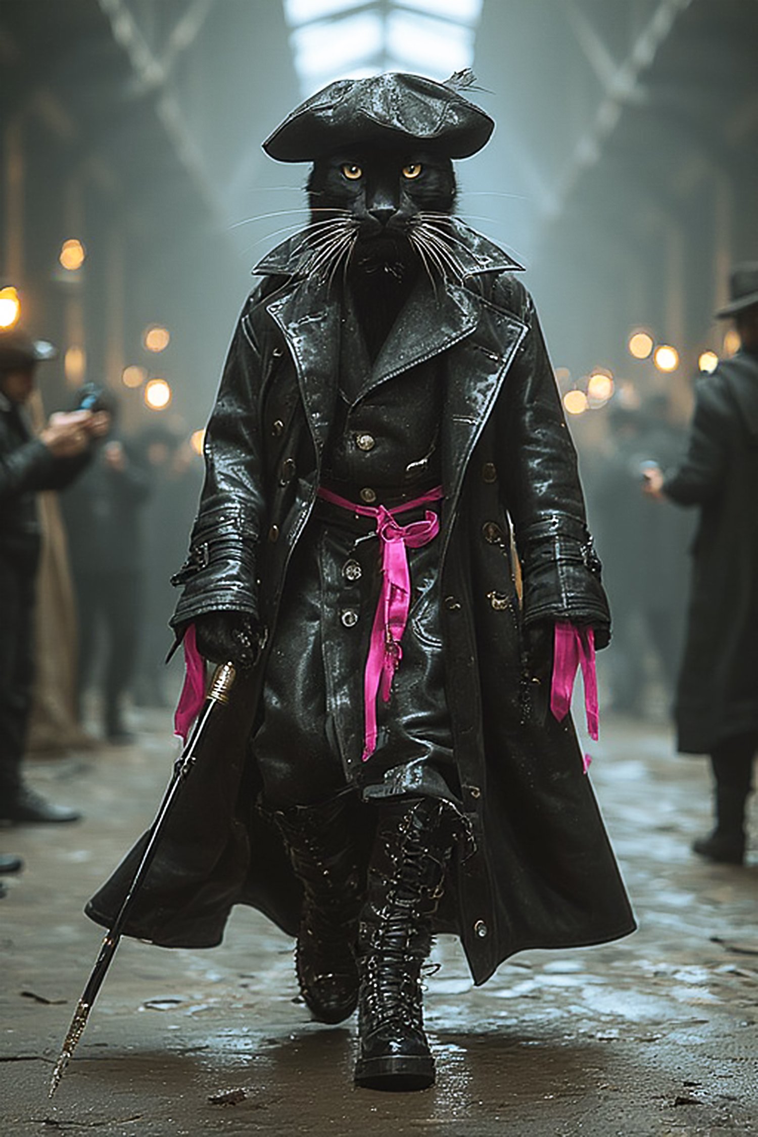 Elegant cat on the catwalk in stylish medieval swordsman attire - AI generated.