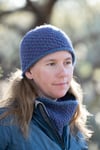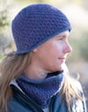 Hat and cowl are worked in the round and from the bottom up. Instructions are included for yarn Fingering weight to Bulky Weight so it will work with whatever yarn you want to use.