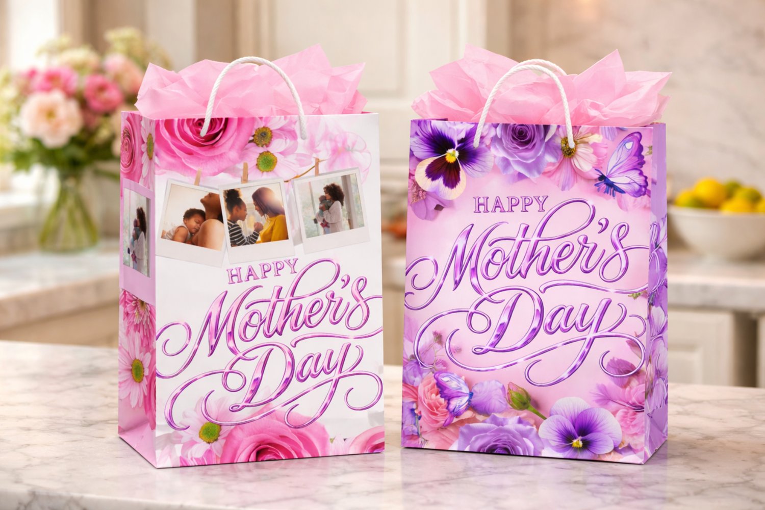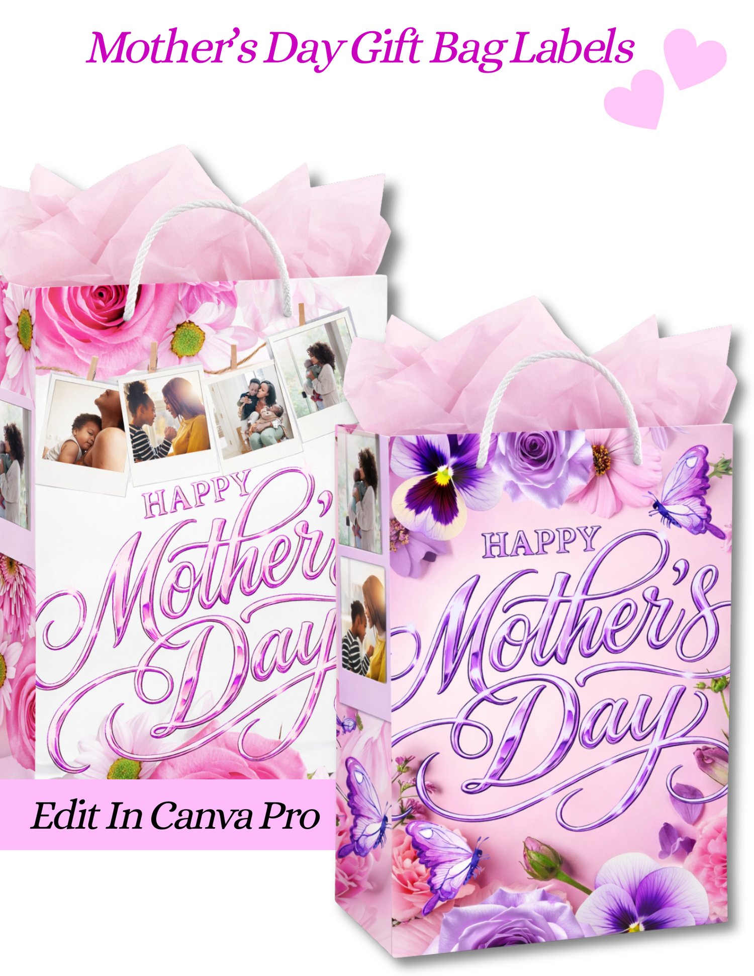 Perfect for DIY gifting, this bundle includes 2 stunning designs (as shown) featuring elegant floral elements and stylish layouts. Just drag and drop your photos into the frames, print, and apply to your gift bag it’s that easy! 🎉