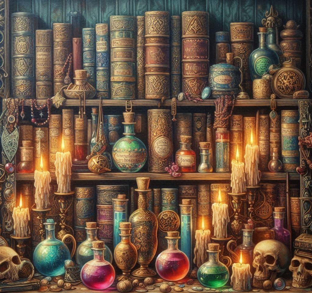 Witch Bookshelf Cross Stitch Pattern, PDF Instant Download, Full Coverage