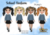 Instant digital download of our Cute School Girl in Dusty Blue and Black Uniform and Pigtails PNG (36 PNG’s included one)