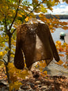 For cropped version with ¾-length sleeves, you will need approximately 762 (858, 925, 1060, 1186, 1312, 1457, 1524, 1711, 1866) yards, or 2 (3, 3, 3, 4, 4, 4, 4, 5, 5) skeins of mYak Baby Yak Lace (100% baby yak, 381 yds/50g).