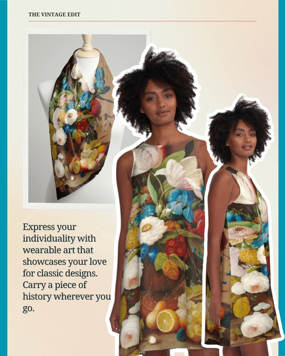 Vintage Still Life Flowers and Fruits | Wall Art | Wearable Art