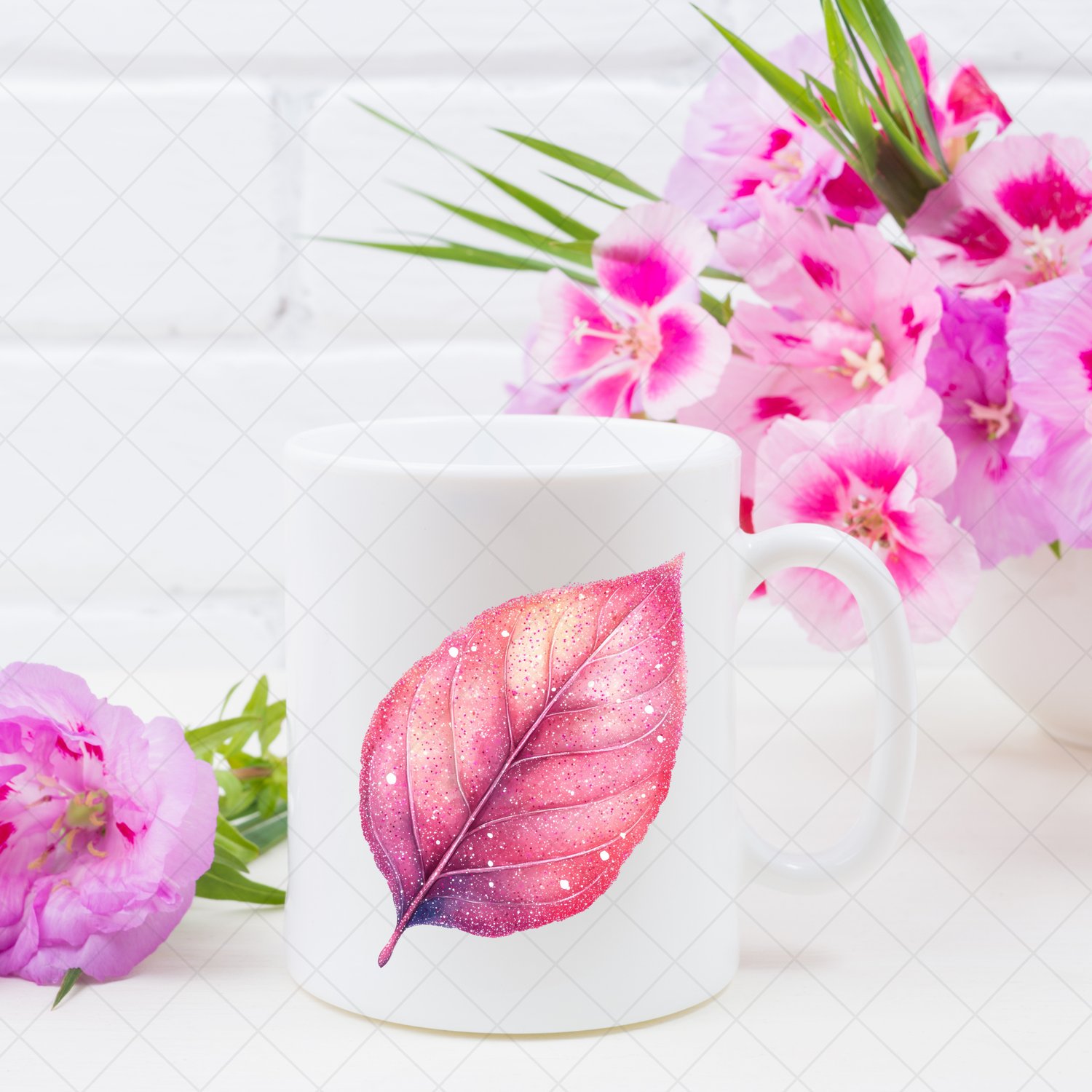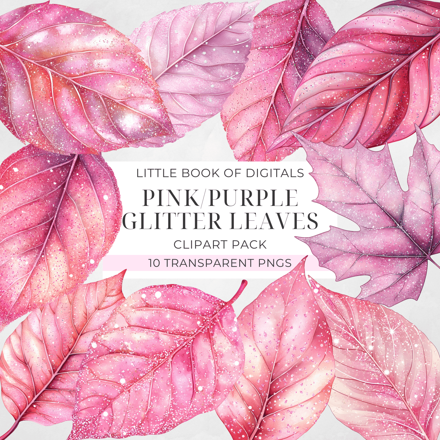 Pink/Purple Glitter Leaves (Set Of 10 Clipart)