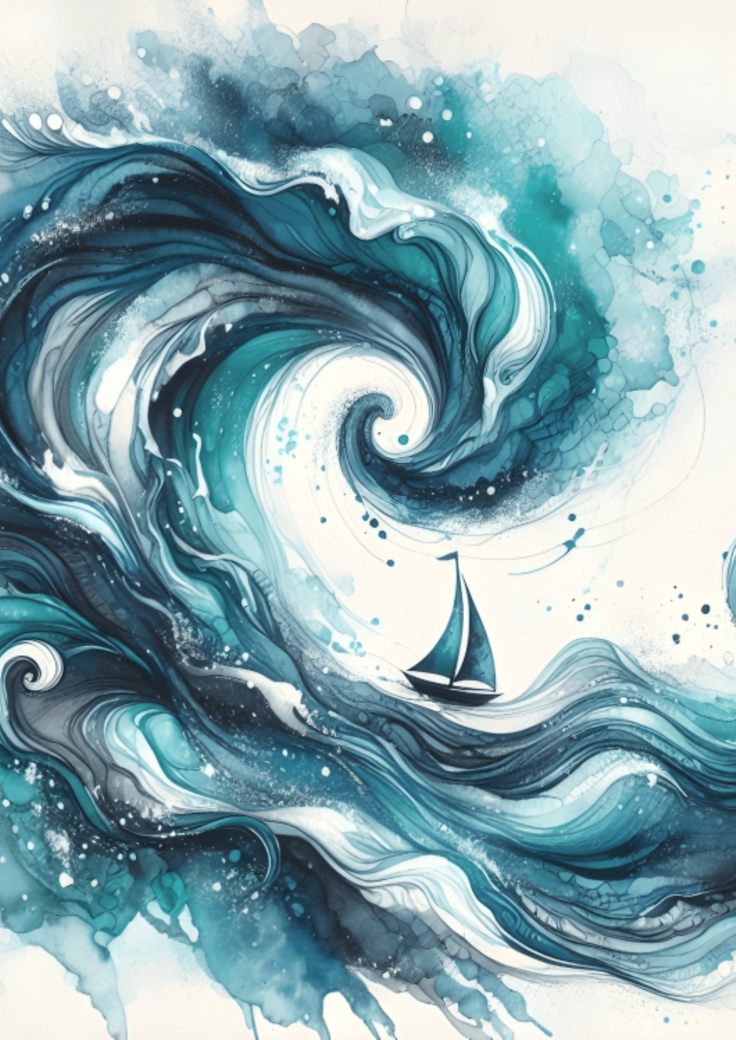 SailBoat, Ocean Landscape, Storm, Sea Nature, Digital Art, Top Art, Best Art
